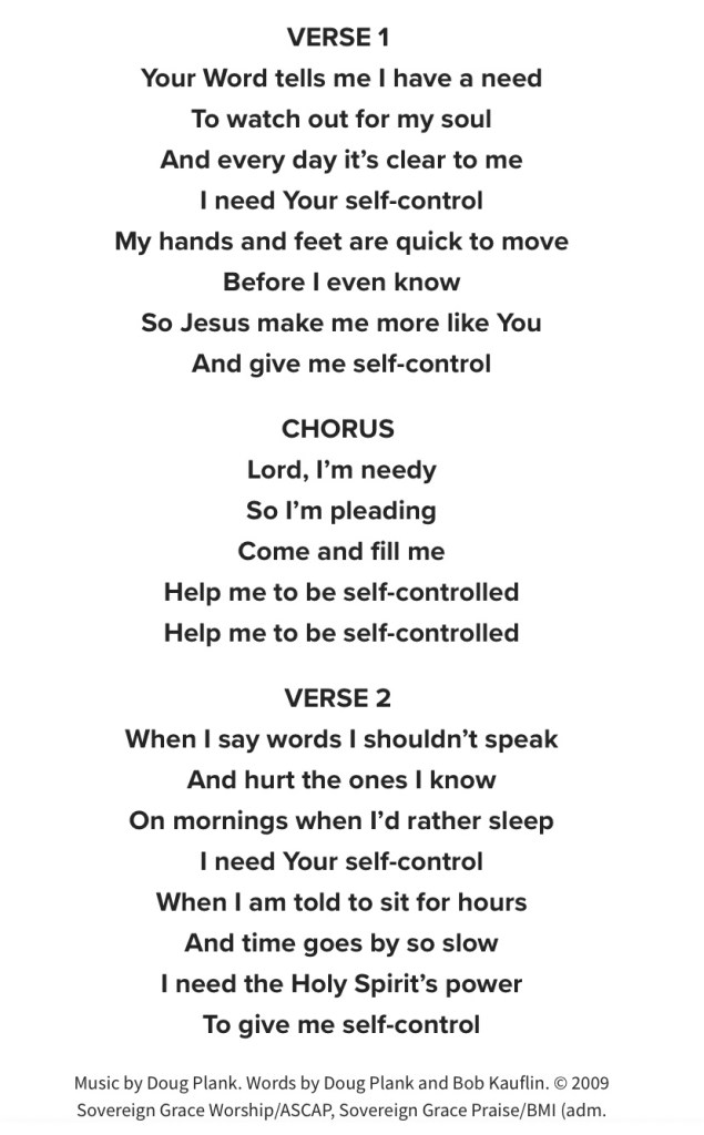 A new song we sang a few Sundays ago at our Phoenix Fellowship here in Durban, South Africa, drove home this point. The unusual title of the song was, “Give Me Self-Control.”