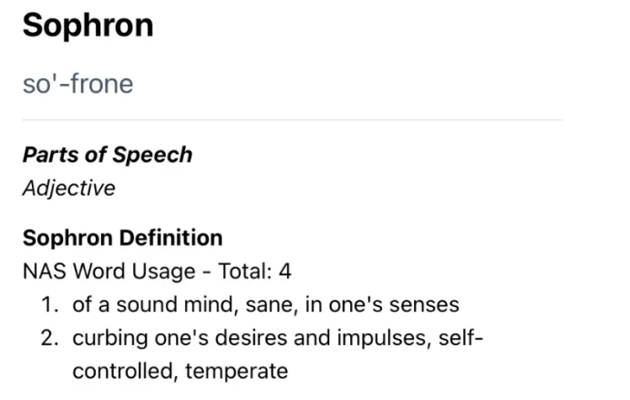 Are you familiar with the word sophron?