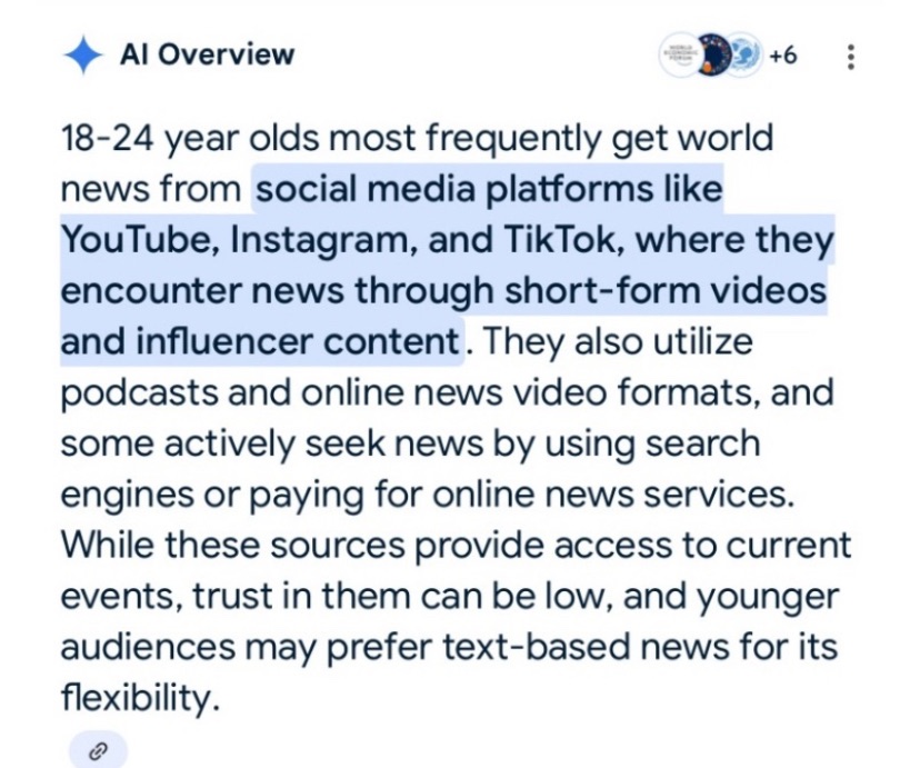 For so many of us, conditioned for years by 24-hour news and social media, our hearts want us to be informed. Many don’t want to find out the latest shocking events one or two days later. AI evaluated a number of sources to report where 18-24 year olds get their news.